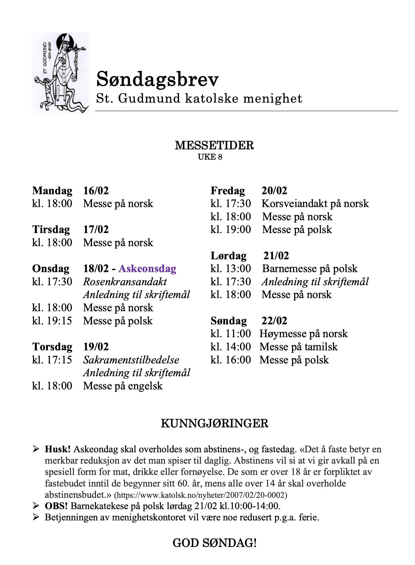 Søndagsbrev uke 8