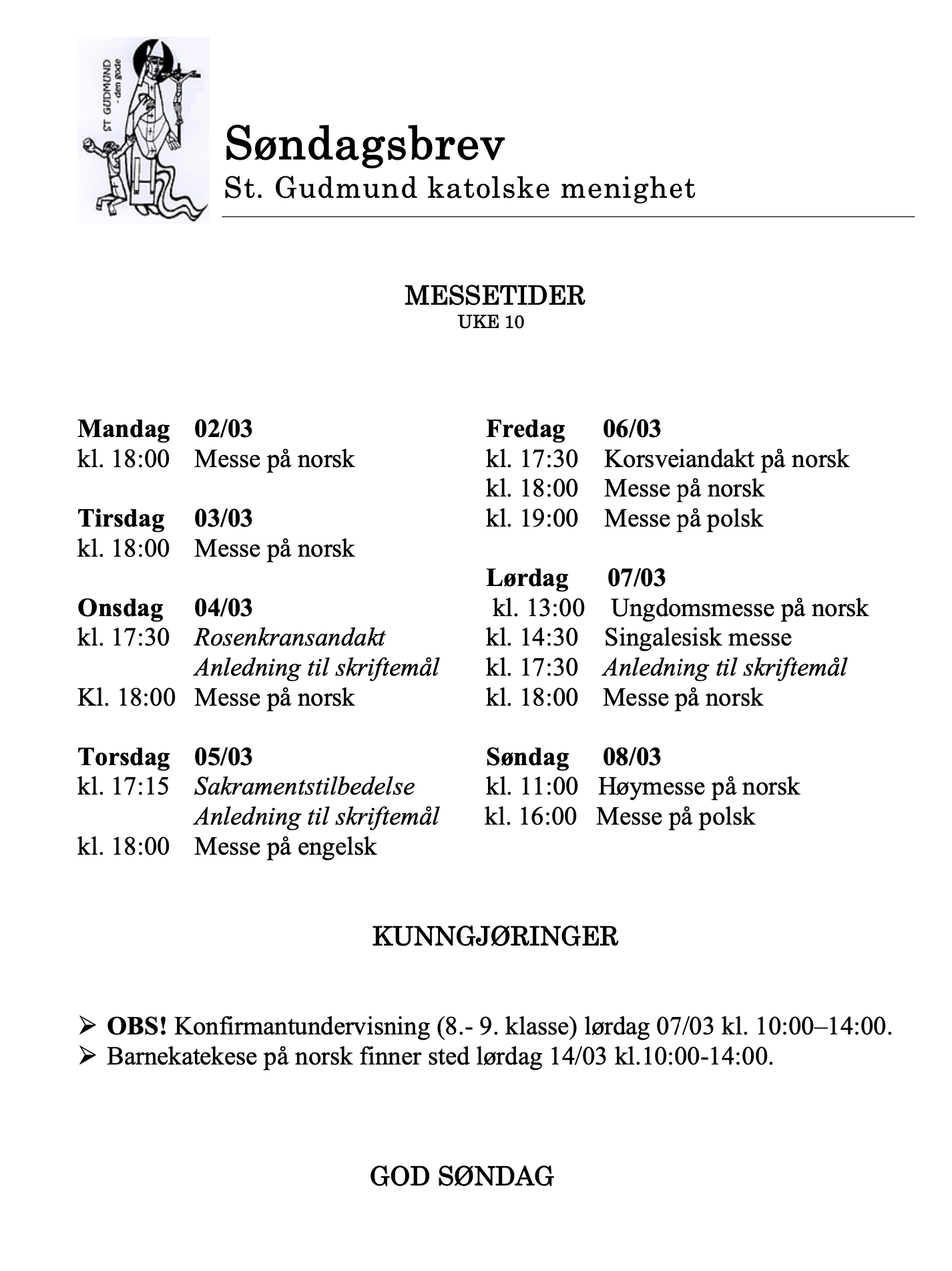 Søndagsbrev uke 10