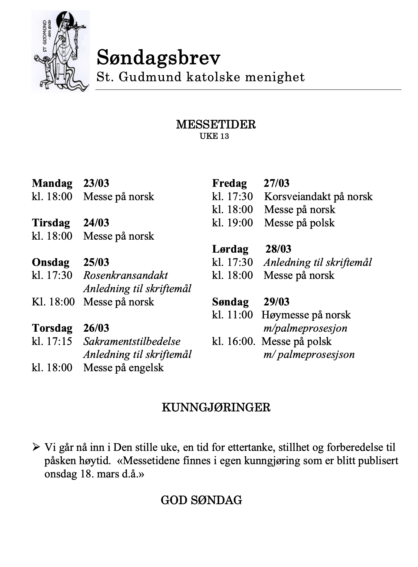 Søndagsbrev uke 13